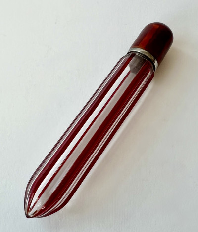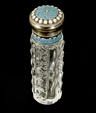 Silver & Enamel Topped Cut Crystal Scent Bottle