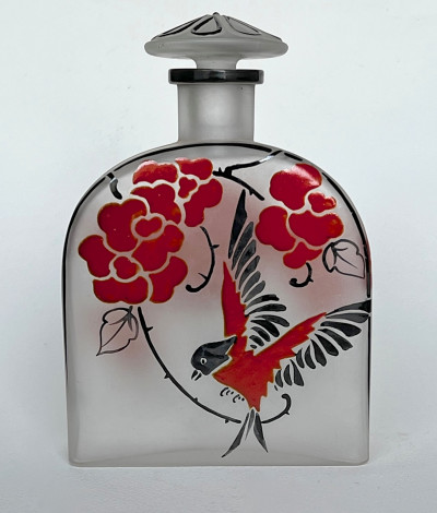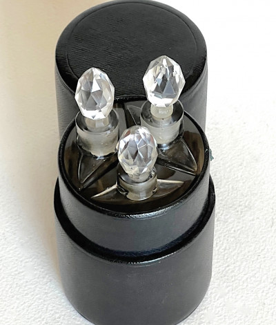 Art Déco Suite of Enamelled Glass Scent Bottles & Powder Bowl