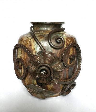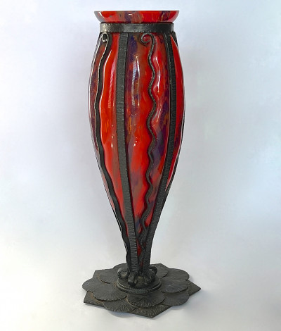 André Delatte (Attr.) - Art Déco Iron & Glass Vase