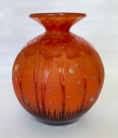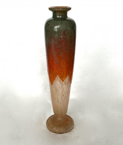 Le Verre Français - Pair Vases 'Feuilles d'Orseille'